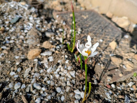 キンモクセイが薫る現地の隅に白い花が咲いていました。