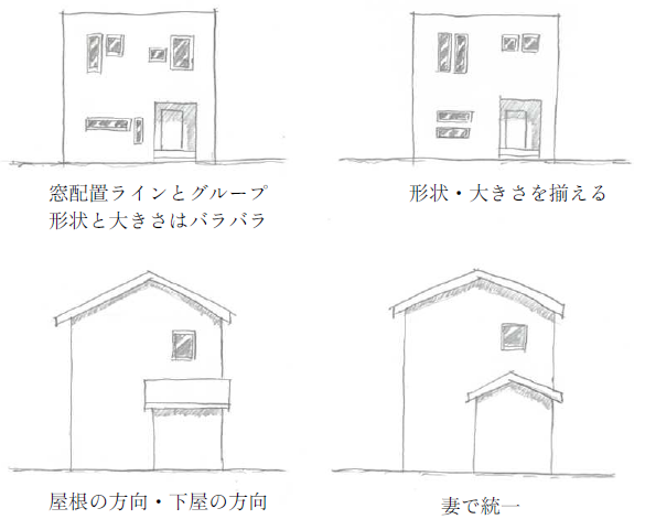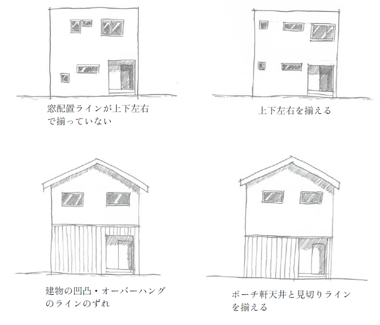 建物全体の形状、屋根の勾配・かけ方、窓配置などざまざまな要素が絡んでくるため一番要であり奥深い部分になります。