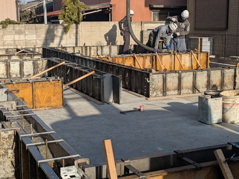 川越市内の現場では基礎工事です。