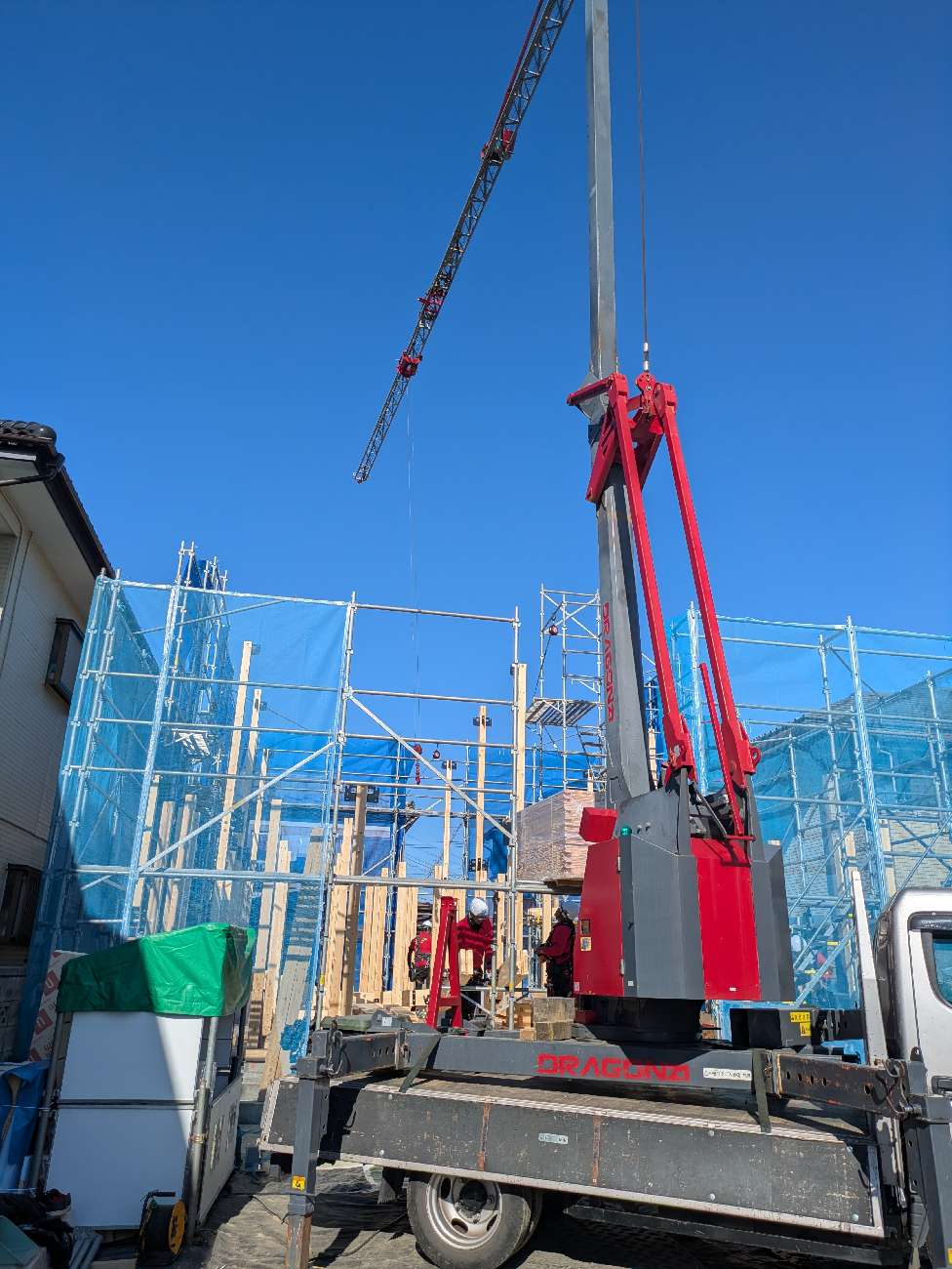 規模が大きな現場のため2日間に渡り作業を行い無事上棟を迎えることができました。