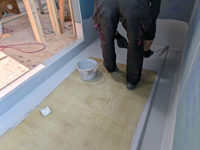 ガラス繊維で補強したポリエステル樹脂で作る塗膜防水です。