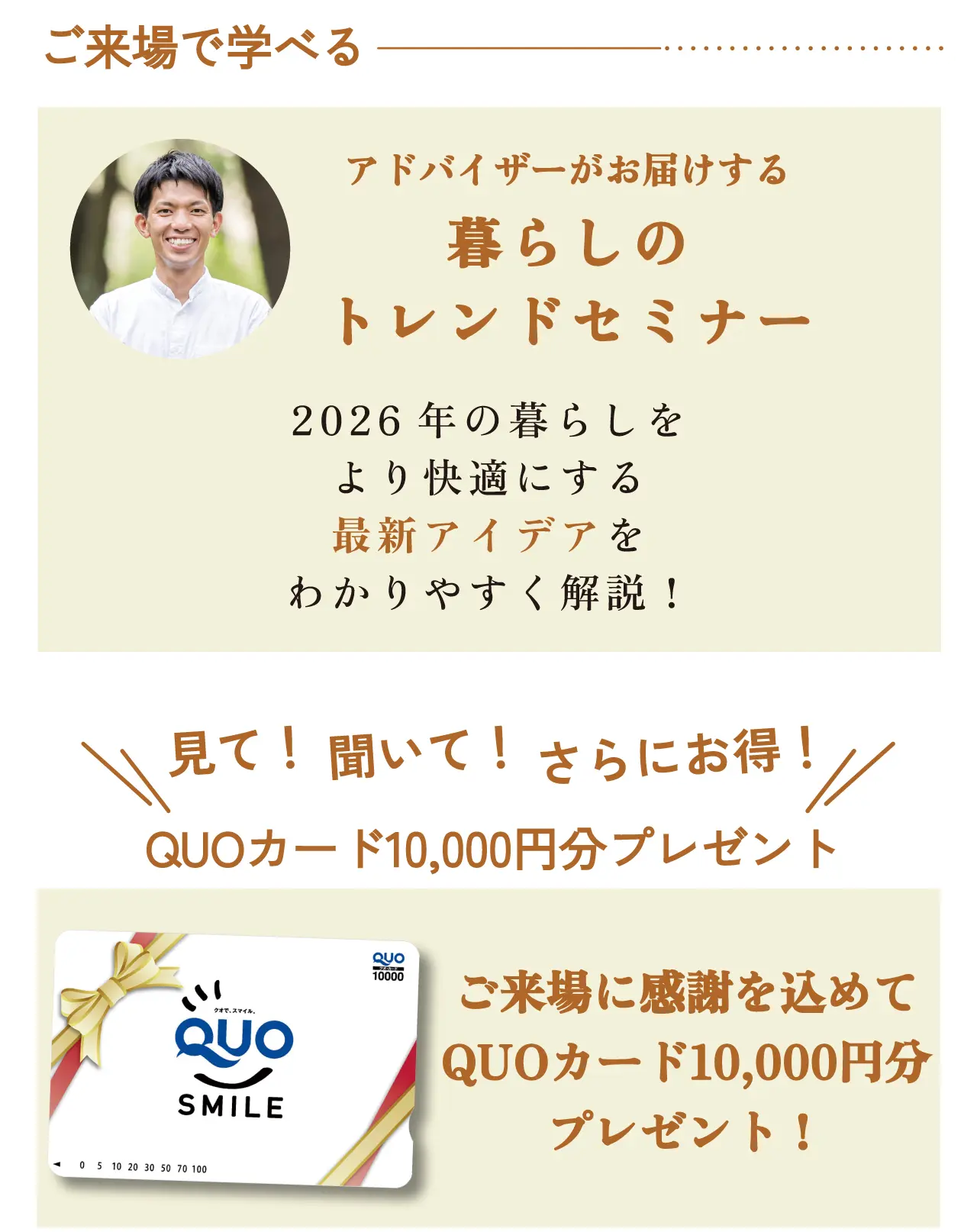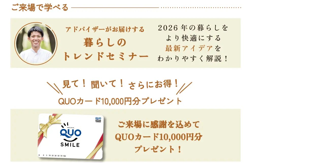 \Web予約限定/ 初来場特典QUOカード 10,000円分プレゼント!